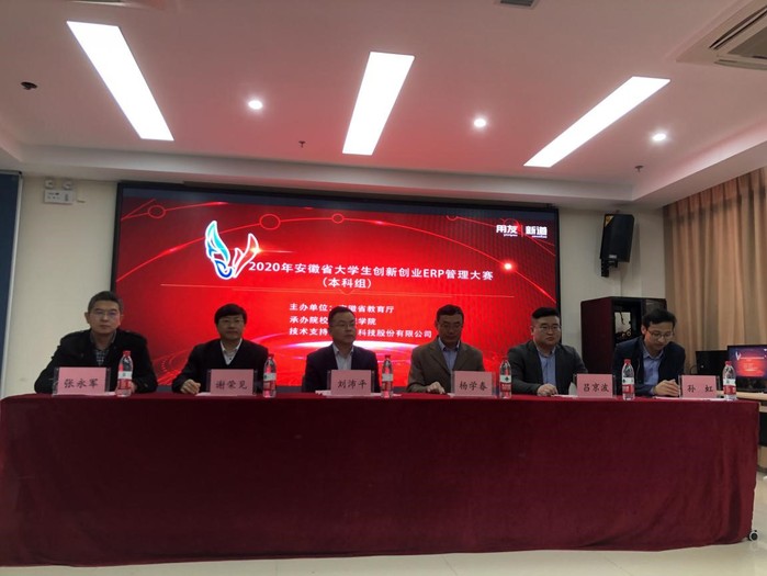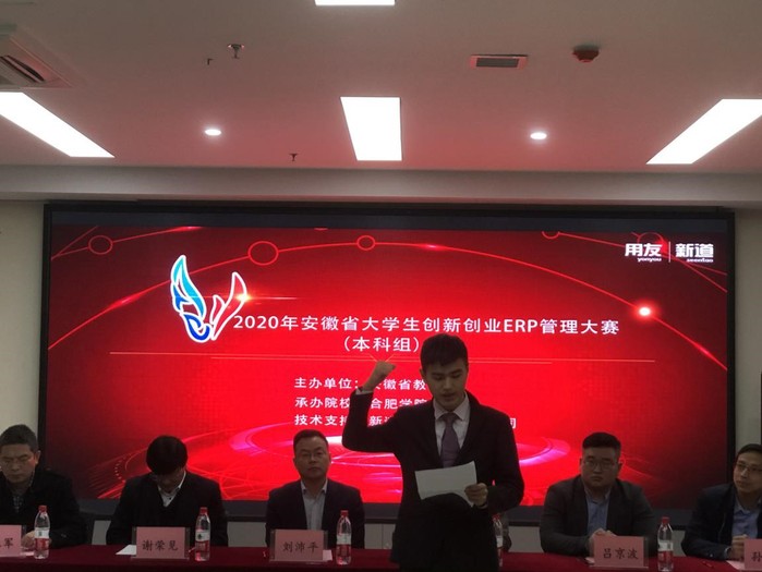 11月7日,由安徽省教育厅主办,合肥学院承办的2020年安徽省大学生创新创业ERP管理大赛在我校举办。安徽省大学生创新创业教育办公室主任、合肥学院大学生创新创业教育中心主任刘沛平,合肥学院经济与管理学院党总支书记杨学春、副书记张永军,安徽工程大学经济管理学院院长谢荣见,新道科技股份有限公司安徽区总经理吕京波等出席大赛开幕式,开幕式由大学生创新创业教育中心副主任孙虹主持。