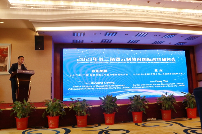 大众汽车(安徽)有限公司首席人力资源官邵剑在致辞中强调,为贯彻落实习近平总书记关于职业教育的重要指示,落实全国职业教育大会精神,开展中国教育部与大众集团即将签署的合作项目,大众汽车将全力推进双元制项目的施行。他表示,大众集团将会建立培训中心,提供培训场所、培训支持,积极与本地高校合作,为学生提供发展空间,创新校企合作模式。