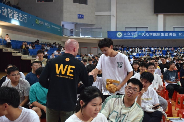 Wang Xiaofeng, Mitglied des Parteikomitees, Leiter des Büros für akademische Angelegenheiten und Dekan des Volkswagen Instituts, stellte die Entwicklungsgeschichte, die Errungenschaften des Aufbaus und das Talentbildungssmodell des Volkswagen Instituts vor und erläuterte den Fachrichtungsansatz der drei dualen Studiengänge wie Intelligente Fertigungsingenieurwesen, Datenwissenschaft & Big Data Technologie sowie Neue Energie Materialien & Geräte. Lou Yi, Senior Direktor für Kultur und Personalwesenkommunikation im Lernen- und Entwicklungszentrum China von Volkswagen, stellte den Unternehmensumfang, die Produktionsstandorte, die Forschungszentren und die Unternehmenskultur von Volkswagen vor. Shao Jian, Chef der Personalverwaltung von Volkswagen (Anhui) Co., Ltd., erläuterte die Entwicklungsgeschichte und die Zukunftsvision von Volkswagen in Hefei. Studierendenverstreter des Volkswagen Instituts Chen Zhengyang, Xiong Wenze und Cheng Mengxue teilten ihre Erfahrungen im Studium und im Leben, und der Alumnus Zhao Feiyang berichtete über seine Arbeit bei Volkswagen Anhui. Xuan Yuewen, Direktor der Parteizelle des Volkswagen Instituts, und Pan Xin, Leiter des Lern- und Entwicklungszentrums China von Volkswagen, stellten den Studierenden den Zulassungsplan, die Zulassungsvorraussetzungen, den Auswahlprozess und den Anmeldemöglichkeiten vor und beantworteten der Reihe nach alle Fragen der Studienanfänger.