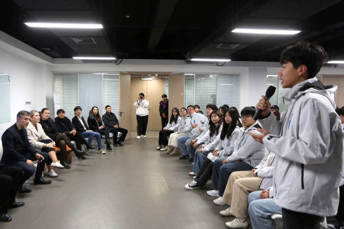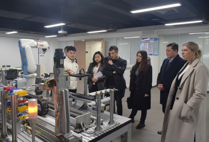 代表团参观了新能源汽车之旅E-Motion Room、精益培训中心以及智能制造产教融合实训中心,深入了解了大众学院教学及行业培训的创新模式。代表团一行与2024 级全体学生及部分 2023 级学生展开了亲切交流。学生们踊跃发言,积极分享所学所感,对话中满是对投身于未来移动出行产业的热切向往。