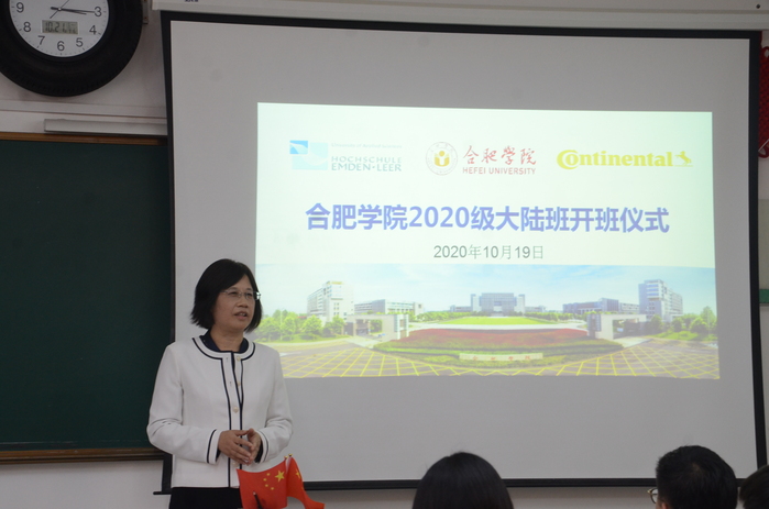 Wu Chunmei überreichte vier Gästen von Continental Tire (China) Co., Ltd. das Ernennungsschreiben zu Gastprofessoren der Universität Hefei und dankte den vier Gastprofessoren für ihre Beiträge zur Reform der Conti-Klasse mit dem dualen System und sogar zur anwendungsorientierten Hochschulbildung. Sie stellte die Entwicklungsgeschichte der Modelleinrichtung der Bildungskooperation zwischen China und Deutschland vor und sagte: „Die Conti-Klasse hat ein neues Modell für die Fachkräfteausbildung geschaffen und ist ein sehr gutes Modell für Bildungsinnovationen. Es wurde auch von den Leitern beider Seiten anerkannt. Ich hoffe, dass die Studierenden die Gelegenheit schätzen, den Ausbildungsmodus der Conti-Klasse zu verstehen, und fleißig lernen.“
