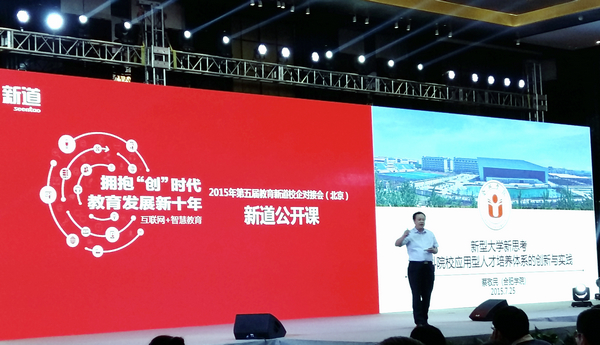 7月25至26日,由中国高等教育学会和新道科技股份有限公司联合主办的2015年第五届教育新道校企对接会在京举行。本次对接会的主题为“拥抱创时代,教育发展新十年——互联网+智慧教育”。大会主要围绕“互联网+”的创新智慧教育教学新模式、“创新创业人才培养试验区”的教学实践等主题展开研讨。教育部高等教育司司长张大良,国家教育咨询委员会委员、用友集团董事长兼CEO王文京,北京林业大学校长宋维明,上海财经大学校长樊丽明以及合肥学院等300多所全国高校的领导、专家参加了对接会。我校党委书记蔡敬民、副校长刘建中率团参加了对接会。
