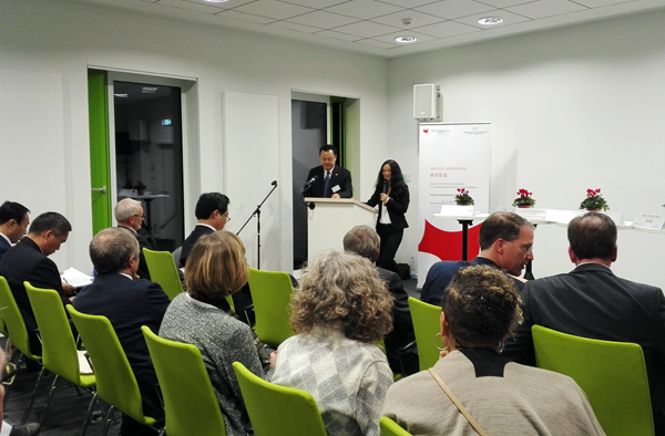 在11月12日研讨会开幕式上,中国驻汉堡总领事孙从彬先生,安徽省教育厅副巡视员周元先生,下萨克森州科文部高等教育司司长米勒恩迈尔先生,奥斯纳布吕克市副市长科勒斯女士,德国大学校长联席会议(HRK)副主席、奥斯纳布吕克应用科学大学校长拜尔特拉姆教授、合肥学院党委书记蔡敬民教授分别致辞。来自中国20所高校和企业代表与德国14所高校和企业行会代表共100余人出席会议并围绕“校企协同创新,推动地方发展”这一会议主题进行了座谈。在接下来的分组讨论中,与会者分别就校企在教研、科研领域的成功合作经验及其在推动地方经济文化发展中的积极作用,进行了介绍和展望。作为具有典型德国特色且备受与会者关注的“双元制高等教育”这一主题,德国与会者通过报告和讨论的形式作了详细的阐述,我校也就即将与德国合作院校及企业开展的该领域国际合作工作进行了方案分享,再次展现了我校在此应用型高等教育崭新合作领域的引领角色。