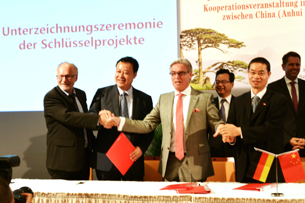 合肥学院党委书记蔡敬民教授、埃姆登/里尔应用科学大学校长盖尔哈德·克鲁伊兹教授、大陆马牌轮胎事业部高级执行副总裁博卡·科勒先生代表签署了上述协议。安徽省省长特别代表、省政府副秘书长汪莹纯,下萨克森州经济、劳动和交通部部长奥拉弗·利斯、中国驻汉堡总领馆总领事孙从彬等见证了协议签署。