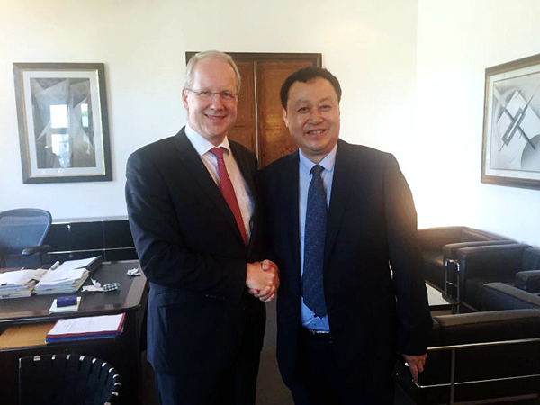 协议签署 左一:克鲁伊兹校长;左二:蔡敬民书记;左三:科勒先生