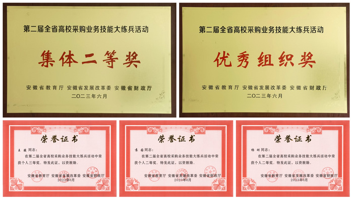 6月26日,由省教育厅、省发展改革委、省财政厅联合主办的第二届全省高校采购业务技能大练兵活动在安徽艺术学院落下帷幕。全省共有71所高校参赛。我校国有资产管理处处长张惠带队,王骏、袁园、杨刚等组队参赛,获得本科高校组集体二等奖、优秀组织奖,个人二等奖两项、三等奖一项。