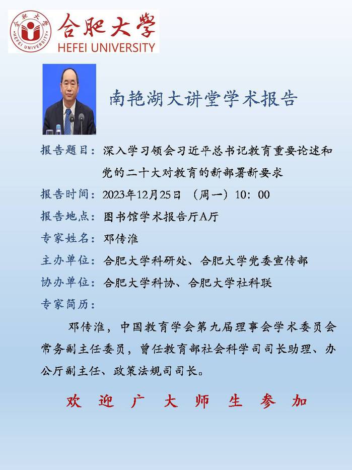 【南艳湖大讲堂】深入学习领会习近平总书记教育重要论述和党的二十大对教育的新部署新要求